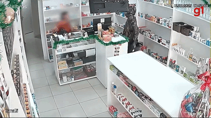 VÍDEO: Homem ameaça balconista com facão em assalto a farmácia em MG